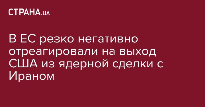 В Евросоюзе негативно прокомментировали выход США из ядерной сделки с Ираном.
