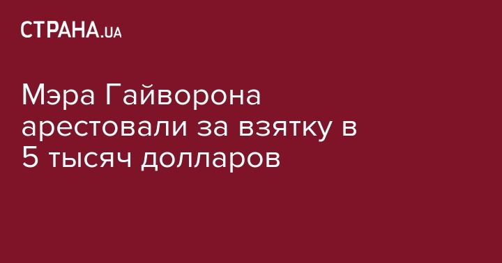 Мэр города Гайворон Кировоградской области Роман Волуйко, который был задержан 17 мая по подозрению в получении взятки, арестован с правом выхода под залог. Суд определил возможность внесения залога в размере 413 000 грн, сообщается на сайте военной прокуратуры Южного региона.