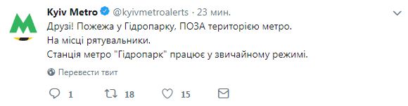 На Гідропарку пожежа біля колій метро pic.twitter.com/XqwXRp8fPG
