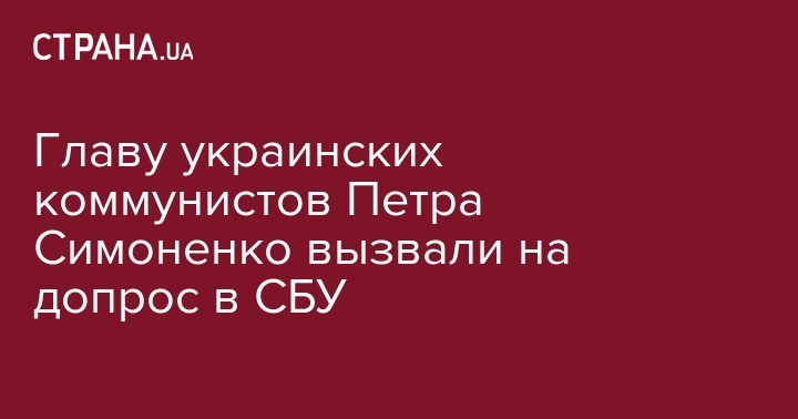 "Сегодня, 10 мая 2018, лидер Компартии Петр Симоненко вызван на допрос в ГУ СБУ в Киеве и Киевской области на 14:00", - сказано в сообщении.