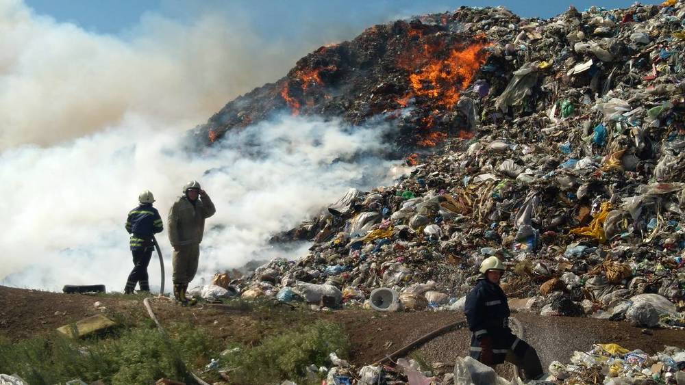 "Сейчас продолжается ликвидация пожара на свалке, площадь которого составляет ориентировочно 1500 кв. м", - говорится в сообщении.