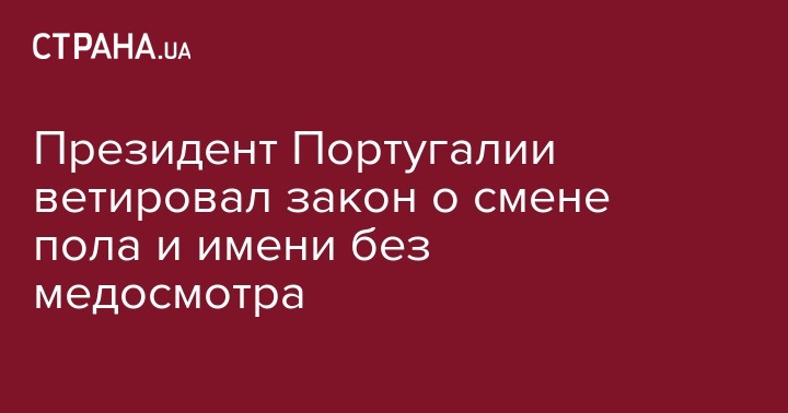 Закон, одобренный португальским парламентом в апреле, позволил бы гражданам вносить изменения с 16-летнего возраста без необходимости проведения медицинского обследования. На данный момент обследование необходимо, а также человеку должно не менее 18 лет.