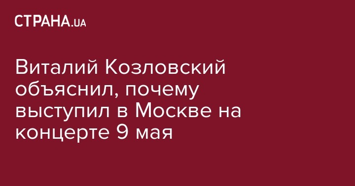 Виталий Козловский объяснил, почему выступил в Москве на концерте 9 мая