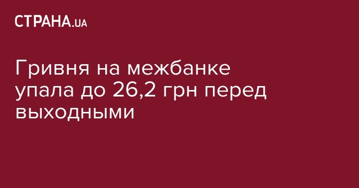 Гривня на межбанке упала до 26,2 грн перед выходными