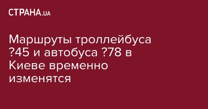 Троллейбусы №45 и автобусы №78 изменят свой маршрут с понедельника 23 мая до 20:00 26 мая включительно, сообщает пресс-служба КГГА.