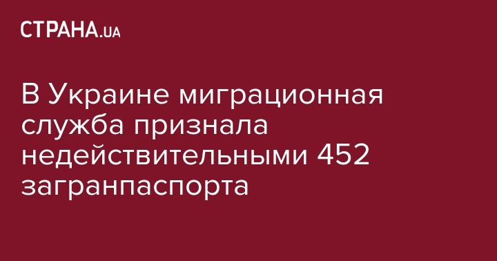 Государственная миграционная служба Украины признала 452 паспорта гражданина Украины для выезда за границу. Документы были оформлены с нарушением требований законодательства.