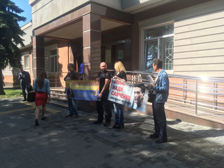 09.45 Как и вчера, перед зданием суда немногочисленный пикет сторонников Савченко.
