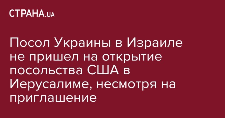 Посол Украины в Израиле не пришел на открытие посольства США в Иерусалиме, несмотря на приглашение