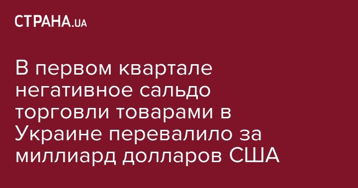 В январе-марте 2018 года негативное сальдо внешней торговли Украины товарами ухудшилось в 1,5 раза по сравнению с аналогичным периодом 2017 года и составило $1,2 млрд. (в первом квартале 2017 года – $794,1 млн).