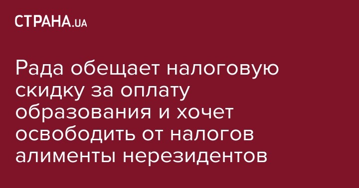 Верховная Рада Украины намерена предоставить налоговую скидку налогоплательщикам, которые заплатили средства в пользу украинских учебных заведений, а также освободить от налогообложения алименты, которые выплачивают нерезиденты Украины.