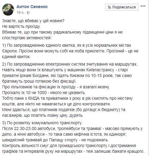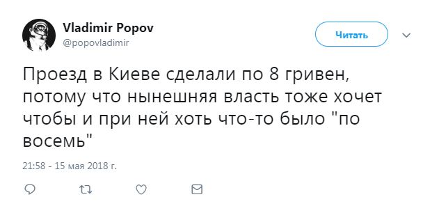 "Затраты на строительство Керченского моста Путин решил отбить за счет повышения цен на общественный транспорт в Киеве. Ну у меня нет других версий откуда эти 8 гривен взялись", - пишет Денис Гороховский.