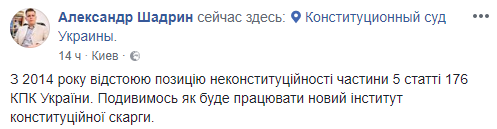 Об этом в Facebook сообщил ее адвокат Александр Шадрин, который обнародовал фото жалобы нардепа.