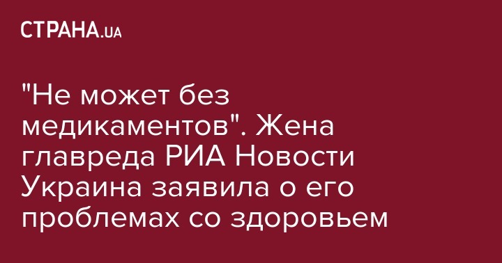 Жена задержанного главного редактора агентства "РИА Новости Украина" Кирилла Вышинского заявила, что он не может обходиться без медикаментов.