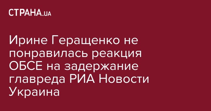 Вице-спикер Верховной Рады Ирина Геращенко заявила, что обеспокоена заявлением ОБСЕ по поводу обысков в "РИА Новости Украина"