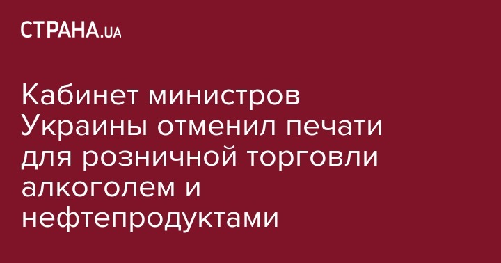 Кабинет министров Украины отменил печати для розничной торговли алкоголем и нефтепродуктами
