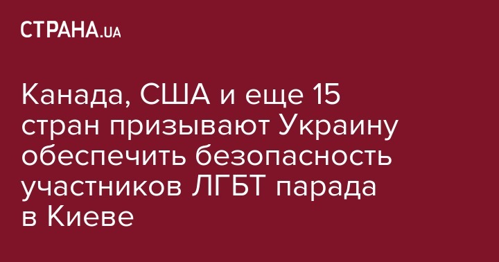 Посольства Европейского Союза, США и еще 15 стран призывают Украину обеспечить безопасность участников марша равенства за права ЛГБТ в Киеве 17 июня. Об этом говорится в заявлении, опубликованном посольством Канады.