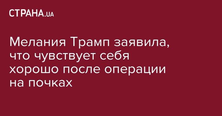 Мелания Трамп рассказала, что чувствует себя хорошо после перенесенной операции на почках.