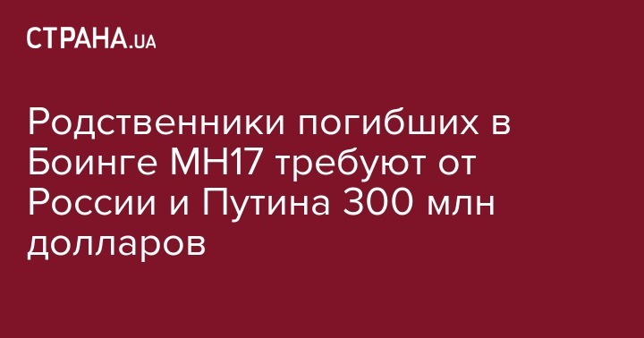 Родственники погибших в Боинге MH17 требуют от России и Путина 300 млн долларов