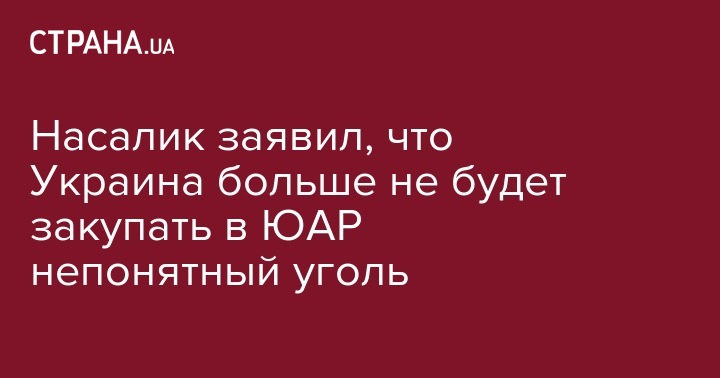 Насалик заявил, что Украина больше не будет закупать в ЮАР непонятный уголь