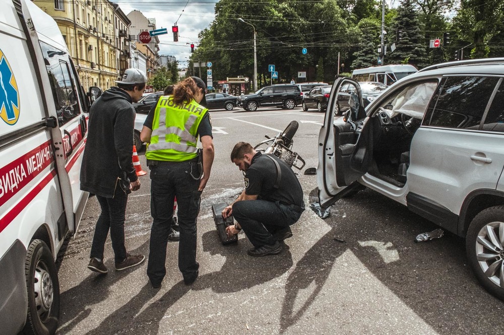 В Киеве на бульваре Шевченко мотоциклист разбился о джип