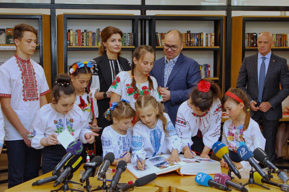 В Одессе жена президента Марина Порошенко вместе со школьниками и мэром города Геннадием Трухановым, который сейчас находится под следствием НАБУ, вышивала семиметровый рушник национального единства.