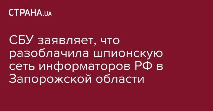 В Запорожской области контрразведка СБУ разоблачила сеть информаторов, организованную представителями Генштаба РФ. Организатором группы, в которую входило шесть человек, предположительно является житель Запорожской области.