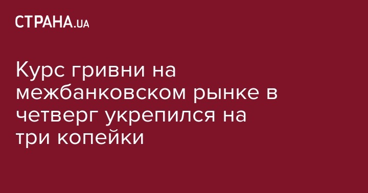 Курс гривни на межбанковском рынке в четверг укрепился на три копейки