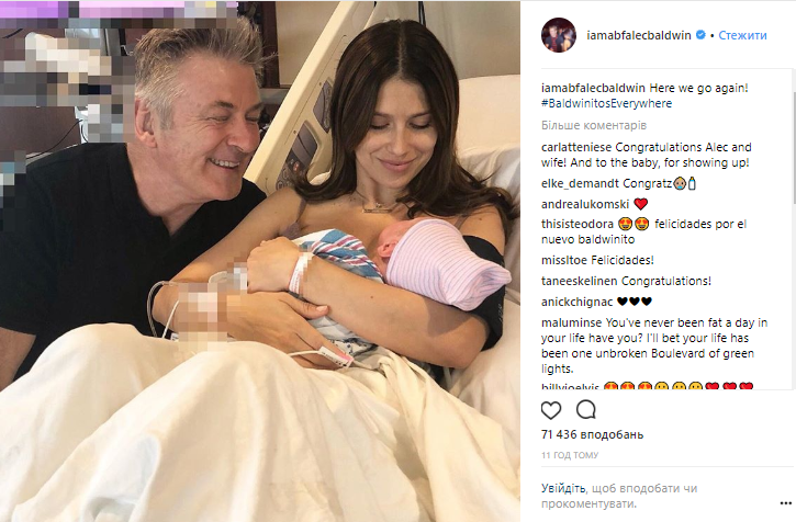 Напомним, что для Алека Болдуина и его жены Гиларии это четвертый совместный ребенок.