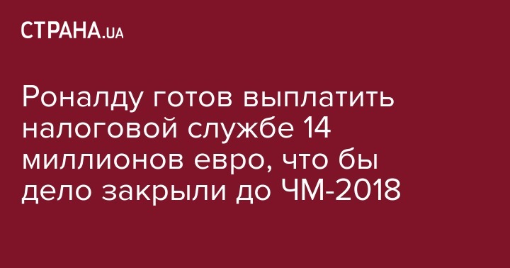 Роналду готов выплатить налоговой службе 14 миллионов евро, что бы дело закрыли до ЧМ-2018