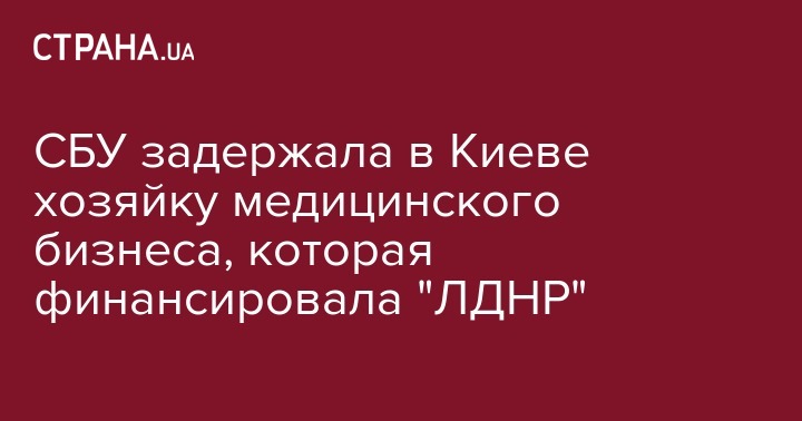 Сотрудники Службы безопасности Украины (СБУ) задержали в Киеве владелицу медицинского бизнеса, через который финансировались террористические организации "ЛДНР".