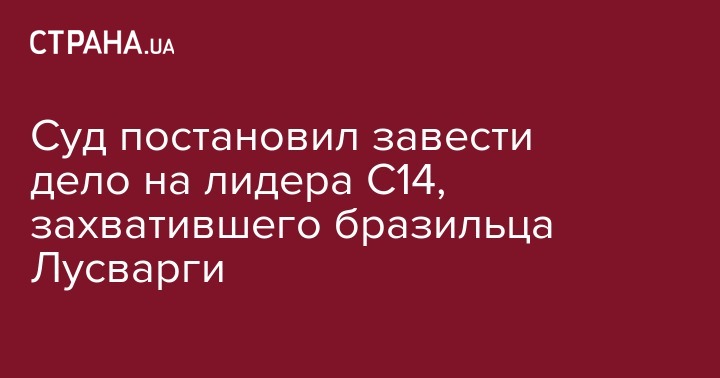 В пятницу, 18 мая, адвокат воевавшего на Донбассе за "ДНР" бразильца Рафаэля Лусварги – Валентин Рыбин – через суд добился возбуждения уголовного дела против неформального лидера праворадикального националистического движения С14 Евгения Карася по ст.146 УК Украины (незаконное лишение свободы) и ст.258 УК Украины (террористический акт).
