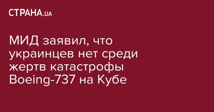 "По информации МИД Кубы, украинцев не было среди пассажиров и членов экипажа Boeing 737, потерпевшего крушение 18 мая", - добавил дипломат.