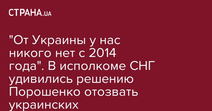 "От Украины у нас никого нет с 2014 года". В исполкоме СНГ удивились решению Порошенко отозвать украинских представителей