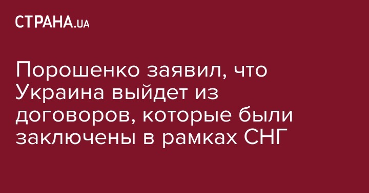 Порошенко заявил, что Украина выйдет из договоров, которые были заключены в рамках СНГ