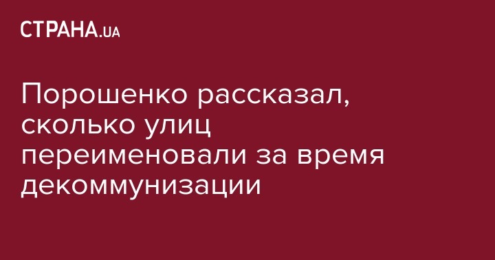 "На основании закона Украины об осуждении коммунистического и национал-социалистического тоталитарных режимов переименованы свыше 52 тысяч площадей и улиц, почти тысяча населенных пунктов. Одних только памятников Ленину демонтировали почти полторы тысячи", - рассказал глава государства.