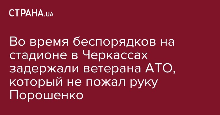 Во время беспорядков на стадионе в Черкассах задержали ветерана АТО, который не пожал руку Порошенко