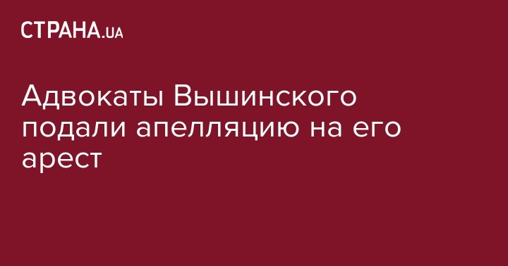 Защита главного редактора агентства "РИА Новости Украина" Кирилла Вышинского, арестованного 17 мая на два месяца Херсонским городским судом, обжаловала его арест. Об этом сообщил адвокат Андрей Доманский.