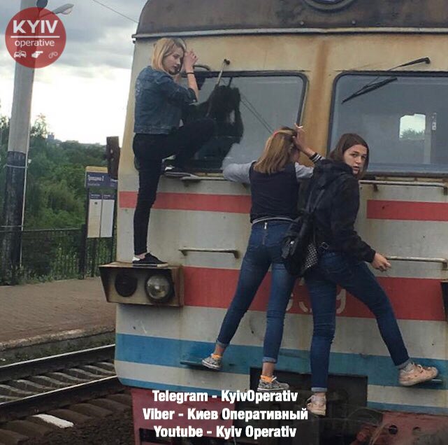 Опубликованы фото трех девушек, которые прицепились к электропоезду на Троещине