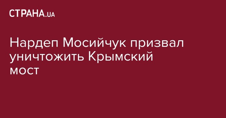 "Керченский мост - это вражеская инфраструктура... Конечно, при освобождении Крыма, при дальнейшей деоккупации, это - стратегический объект. Любая нормальная страна мира, которая находится в состоянии войны за свою территорию, за своих людей, конечно, стремится уничтожить вражескую инфраструктуру - мост, железнодорожный пункт, аэропорт", - сказал Мосийчук.