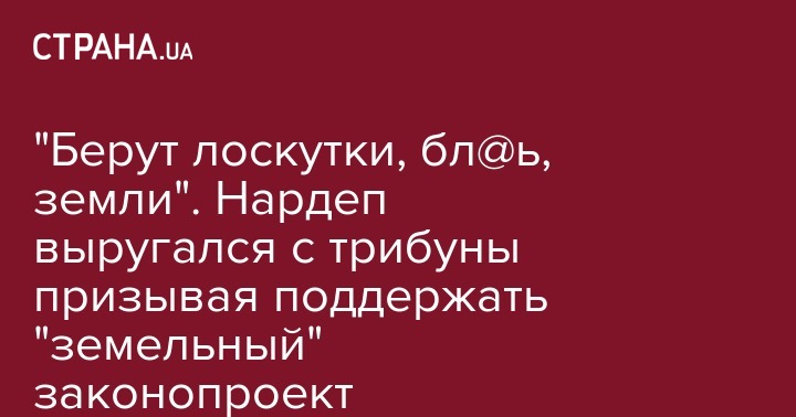 "Мы с этим законом опоздали ровно на три года... Есть поле и рэкетиры, которые не дают развиваться нашим аграрным компаниям, берут лоскутки, бл*дь, посередине этого поля и тем самым блокируют развитие сельского хозяйства в Украине. Орошение - на сегодняшний день все знают, что без инвестиций в орошение на юге Украины не будет развития сельского хозяйства. Снова те же бандиты и рэкетиры шантажируют наши агропромышленные предприятия этими клочками земли и не дают развиваться", - заявил он.
