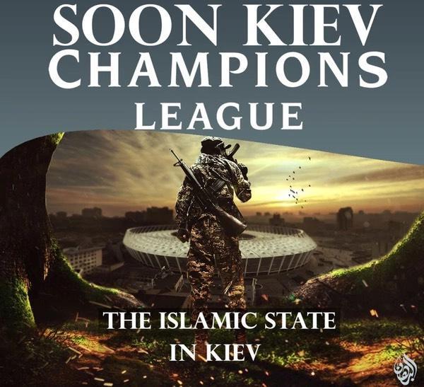 "Лига чемпионов и Чемпионат мира в России. Мы будет там. Исламское государство", - гласят надписи на постере.