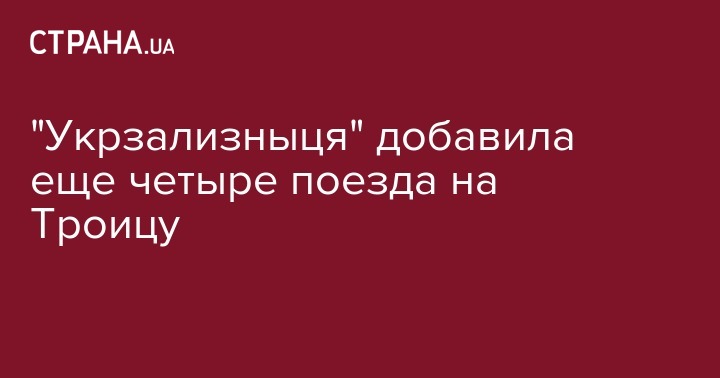 "Укрзализныця" назначила еще четыре дополнительных поезда на Троицу к основному списку из 13 дополнительных поездов. Все составы будут курсировать в период с 25 по 29 мая.