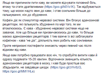 "Если вы прекратили пить кофе, вы можете испытывать головную боль, усталость и стать раздражительными. Так происходит потому, что мозг слишком привык к кофе, и стал склонным более к торможению, чем к возбуждению", - отметила Супрун.