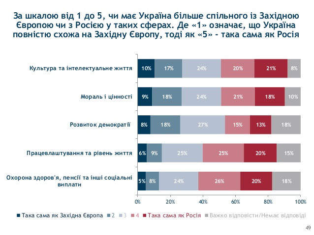 Возможно, эту ситуацию объяснит другой слайд опроса IRI. Институт спросил украинцев, с кем у них больше общего - с западными европейцами или россиянами.