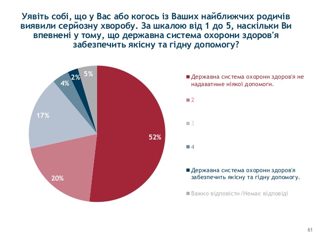 К медицине у украинцев - особые претензии. 70% опрошенных считают, что при серьезной болезни качественной помощи от существующей в стране системы здравоохранения они не получат.