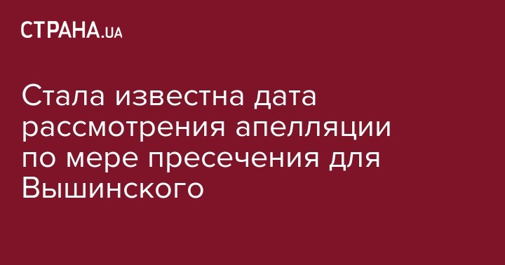 Стала известна дата рассмотрения апелляции по мере пресечения для Вышинского