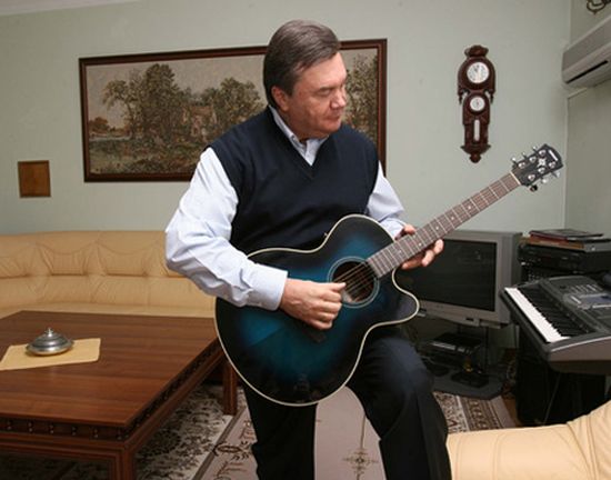 Экс-президент Виктор Янукович тоже не раз радовал публику своим пением. Так, в 2009 году, еще до президентства, тогдашний лидер Партии регионов выступил в Луганске в честь Дня города. Помимо поздравительной речи, политик спел а капелла песню авторства своего друга-шахтера и станцевал на сцене. Янукович добавил, что эту песню скоро "будут петь и в Украине, и во всем мире".