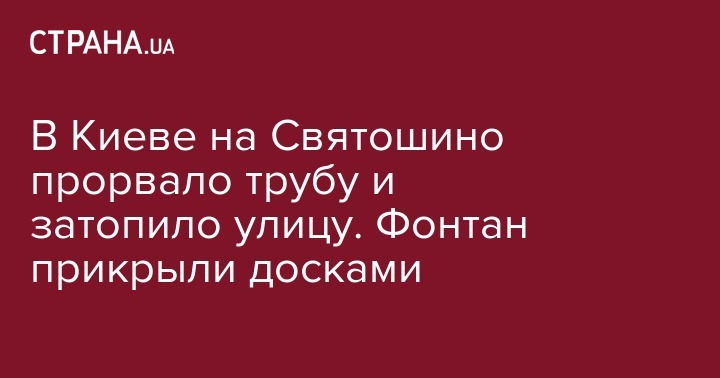 В Киеве на Святошино прорвало трубу и затопило улицу. Фонтан прикрыли досками