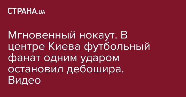 Мгновенный нокаут. В центре Киева футбольный фанат одним ударом остановил дебошира. Видео