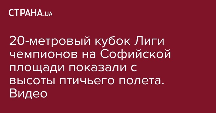 Появилось зрелищное видео 20-ти метровой модели кубка Лиги чемпионов УЕФА на Софийской площади в Киеве.